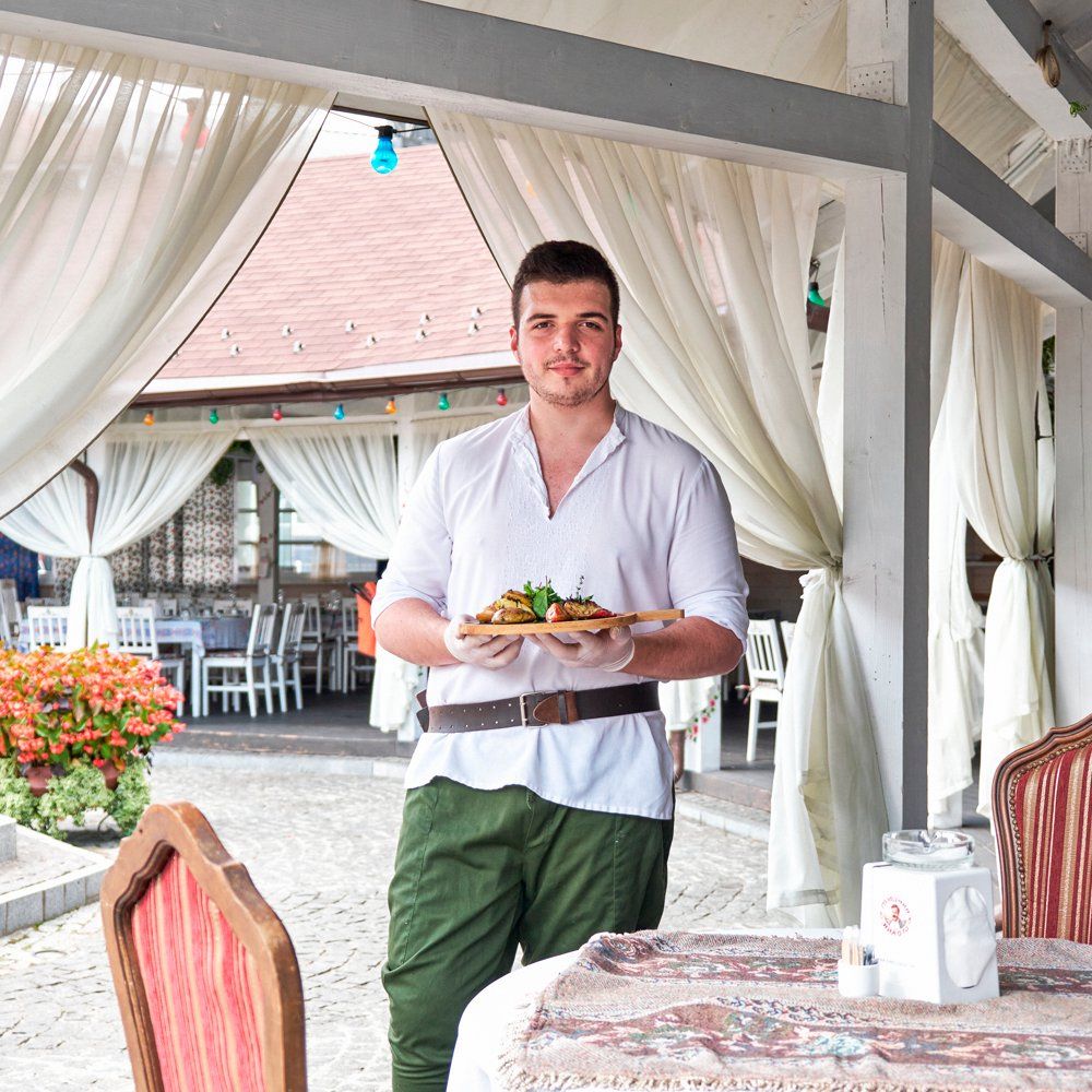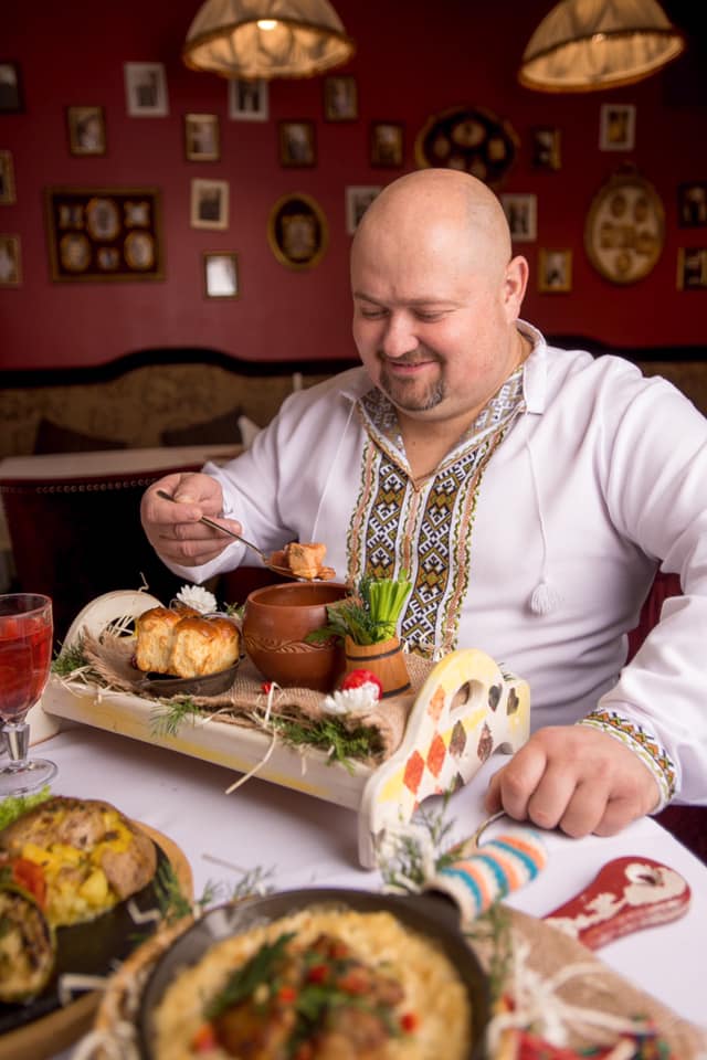 На вході у ресторан гостей традиційно зустрічає господар Микола Миколайович та частує усіх чарочкою самогонки та галицькими смаколиками.